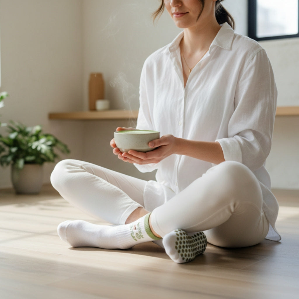 Matcha Mood Soft, breathable socks with a non-slip grip designed to keep you grounded through...